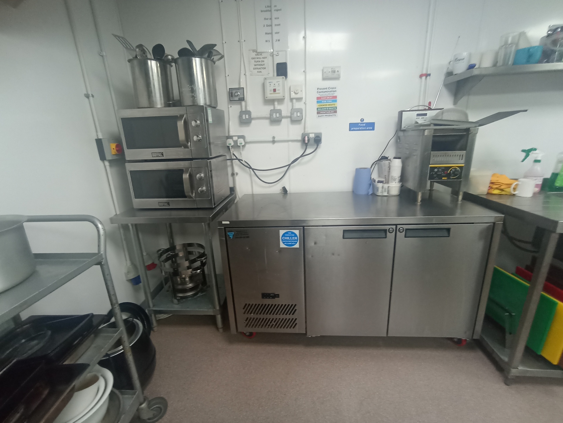 Fully kitted out with commercial grade equipment you should find everything you need to run group cooking sessions, or even cater for the event your holding in Main Space. At present the space is used to provide upwards of 200 breakfasts over 3 mornings, so you can see that it meets the needs of those doing mass catering.